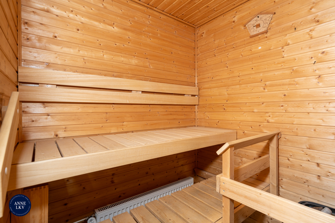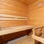 | Saunan kuvaus | Seinät ja katto paneloitu, laattalattia, lauteet, sähkökiuas. |