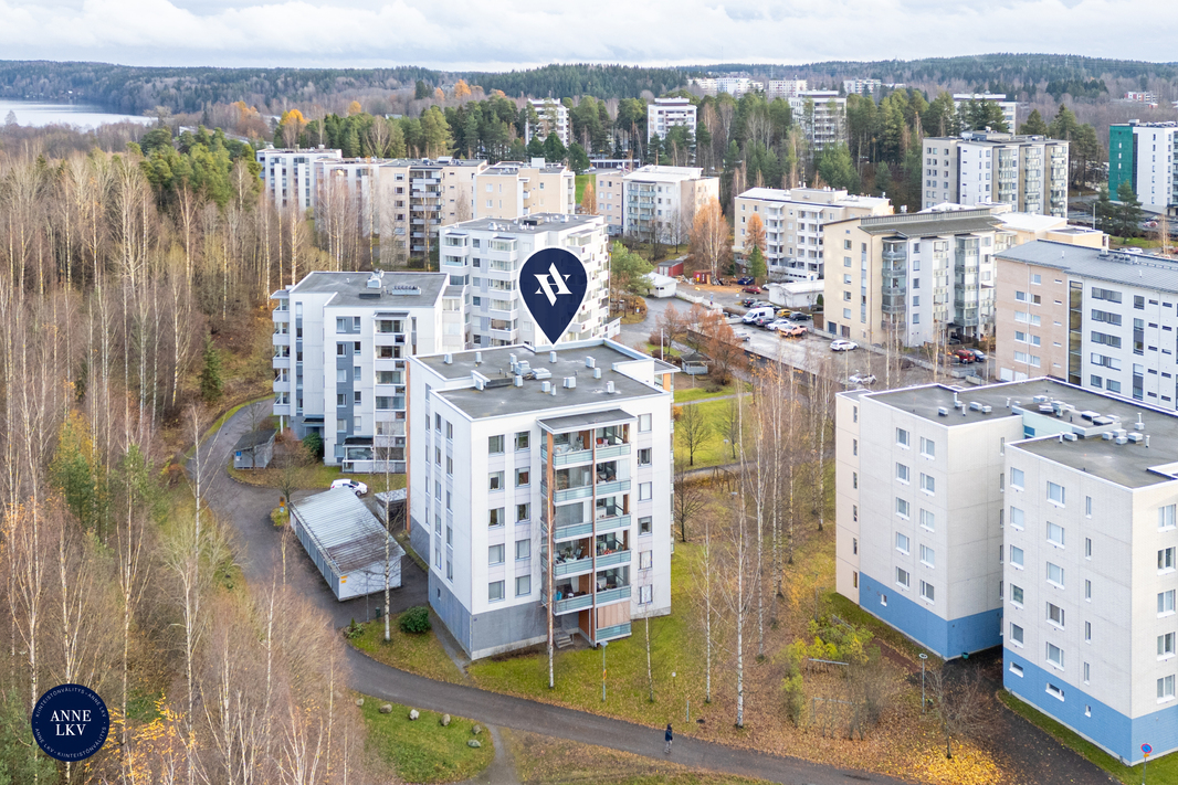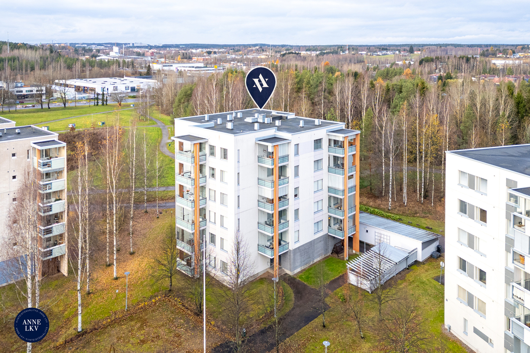 | Palvelut | Kaikki palvelut n. 200 m - 400 m (S-market, apteekki, R-kioski, parturi-kampaamo, pub, pitseriat, jalkahoitola, kauneushoitola, terveysasema, kuntokeskus, K-Supermarket, Tokmanni, K-Rauta, McDonalds ym.). Sentteri ja Spiral-halli n. 400 m. Riihiniemen uimaranta n. 1 km (myös talviuintimahdollisuus). Kaukajärven soutu- ja melontastadion ja Kaukajärven sauna n. 1,1 km. |