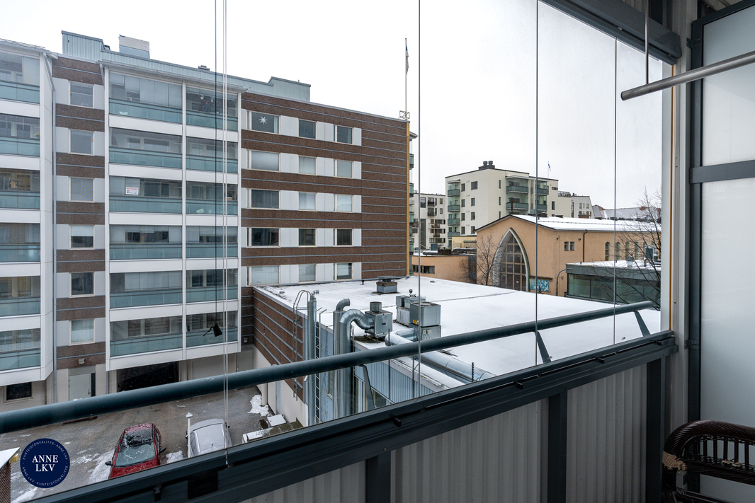 Ajattoman linjakas keittiö tarjoaa erinomaiset puitteet ruoanlaittoon ja siellä on hyvin tilaa myös ruokaryhmälle. Keittiön ja makuuhuoneen ikkunat avautuvat rauhalliselle sisäpihalle, kun taas olohuoneesta on näkymät Näsilinnankadun suuntaan. Moderni kylpyhuone hurmaa tyylikkyydellään ja käytännöllisyydellään. Säilytystiloina toimivat kaapit, iso vaatehuone, vinttikomero sekä jäähdytetty kylmäkellari. Lasitettu parveke suuntautuu sisäpihan rauhaan; taloyhtiössä parveketupakointi on kielletty.