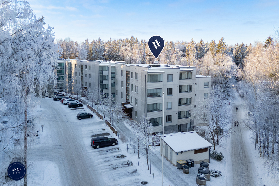 Mainiolla sijainnilla päättyvän tien päässä lähellä ratikan päätepysäkkiä ensimmäisen kerroksen tilava kulmahuoneisto. Hyväkuntoisessa asunnossa on parkettilattiat ja seinäpinnat maalattu/tapetoitu. Keittiössä on työtaso- ja kaappitilaa sekä ikkunan edessä hyvä tila ruokaryhmälle. Keittiöön saa sopimaan myös vaikkapa erillisen astiakaapin tai lipaston. Olohuoneessa on ikkunanäkymä kahteen ilmansuuntaan ja käynti lasitetulle n. 7,2 m2 parvekkeelle. Parveke toimii huoneiston jatkeena lähes vuoden ympäri tarjoten monia käyttömahdollisuuksia aina parvekeviljelystä mukavaan oleskeluun. Parvekkeella viihtyy hyvin myös lämpiminä kesäpäivinä, koska parvekkeelle ei suoraan porota aurinko. Makuuhuoneeseen sopii tarvittaessa myös etätyöpiste. Säilytystiloina ovat kaapistot, vaatehuone ja huoneistokohtainen irtainvarasto. Kylpyhuoneessa on hyvä tila pyykkihuollolle ja peseytymiselle sekä oman saunan leppoisista löylyistä voit nauttia vaikka joka päivä. Asunto sijaitsee pääsisäänkäynnin kerroksessa ja kulku asuntoon on esteetön.