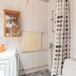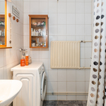 | Kylpyhuoneen kuvaus | Kylpyhuone saneerattu 2011. Seinät ja lattia laatoitettu, katto maalattu, peili, lavuaari, pesukoneliitäntä, suihku, suihkuverhotanko, wc, lämpöpatteri, pyyhekoukut. |
