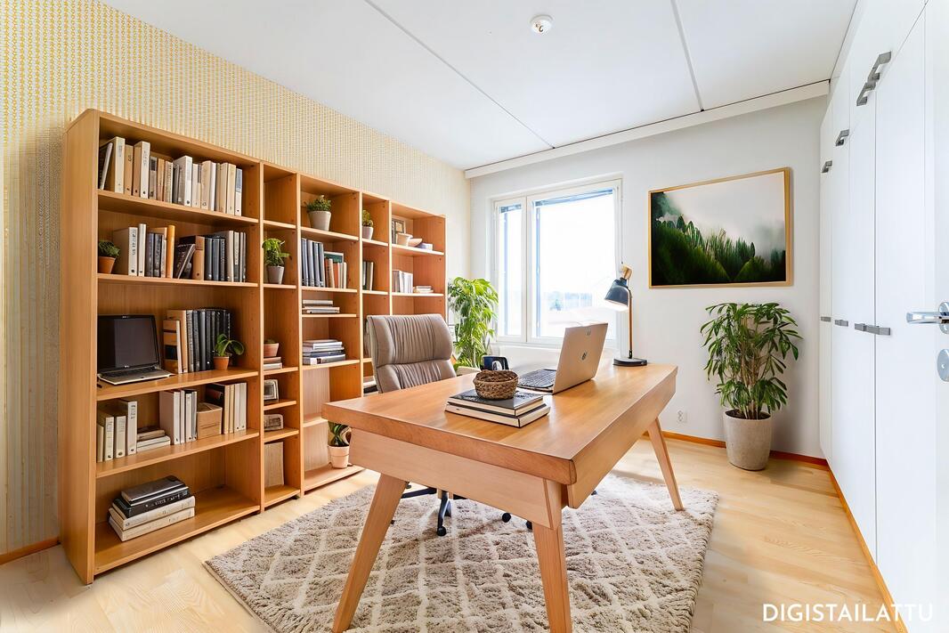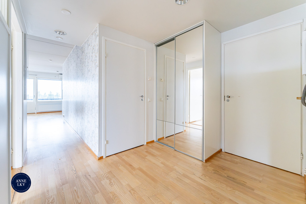 Asunnon olohuone ja avokeittiö muodostavat yhtenäisen valoisan tilan, josta on kulku parvekkeelle. Kolme makuuhuonetta tarjoavat joustavuutta erilaisiin elämäntilanteisiin. Säilytystilaa löytyy runsaasti: kaapistot, vaatehuone, eteisen peililiukuovikaapisto sekä huoneistokohtainen irtainvarasto.