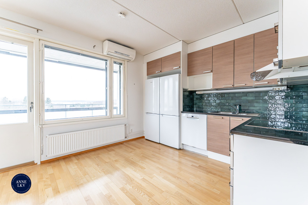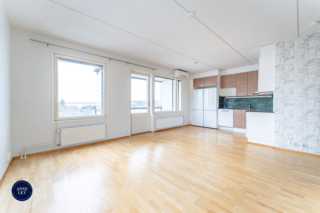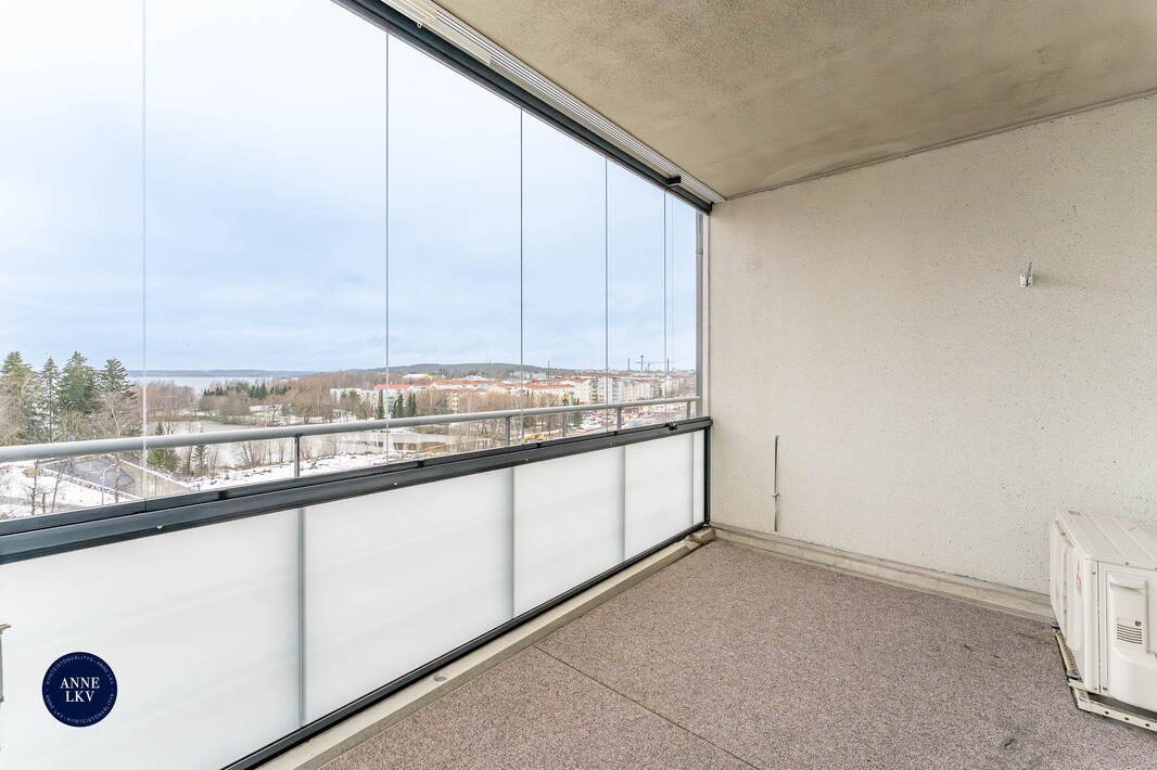 Rakenteilla olevan ratikkareitin varrella, 7. kerroksessa sijaitseva valoisa ja toimivapohjainen kaupunkikoti hurmaa avarilla maisemillaan. Noin 10 m² lasitetulta länsiparvekkeelta avautuvat upeat näkymät Näsinneulalle, Pyynikin näkötornille, Pyhäjärvelle ja aina Nokialle asti. Parveke toimii loistavasti lisätilana ympäri vuoden.