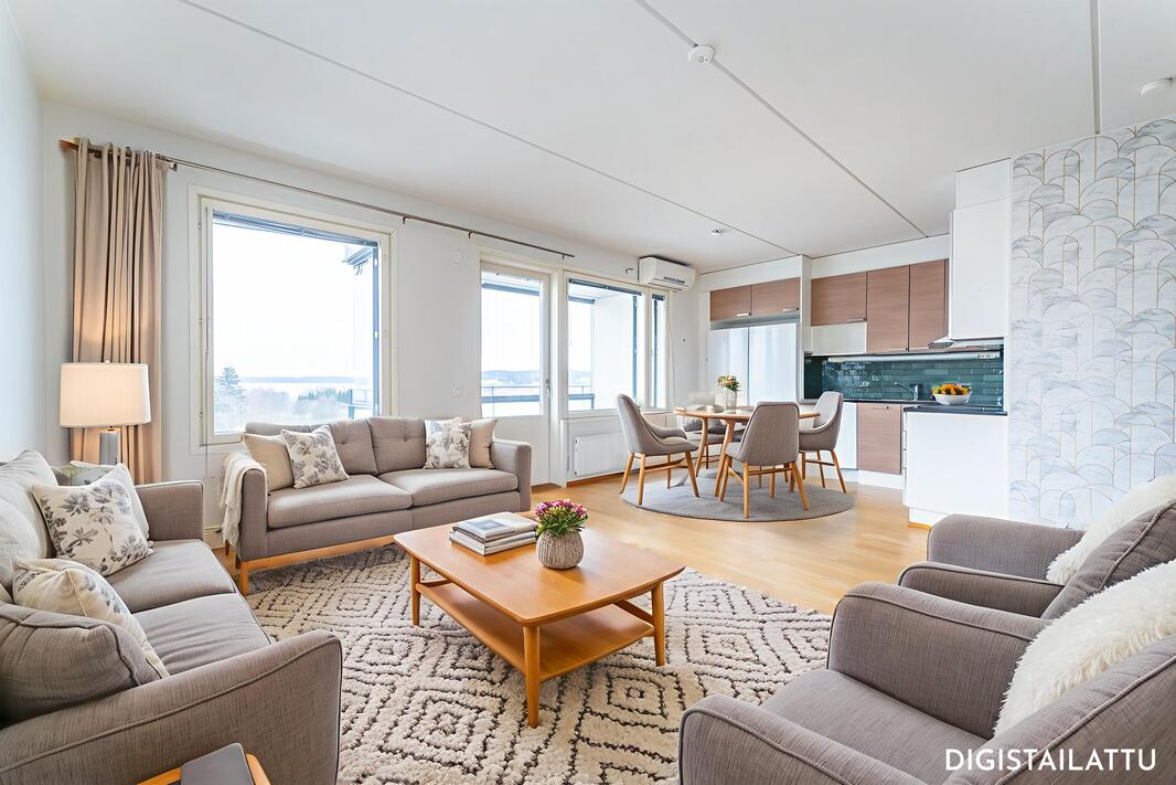 Yläkerroksen upea huoneisto Pyhäjärvi- ja kaupunkinäkymin!