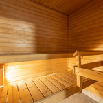 | Saunan kuvaus | Seinät ja katto puupaneeli, lauteet, laattalattia, sähkökiuas, lasiovi, lämpöpatteri. |